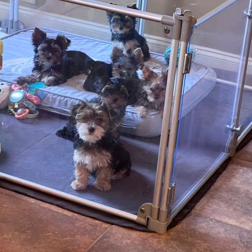 Our in home breeding facilities are designed to provide our puppies with a safe, comfortable, and stimulating environment. We have spacious indoor space that are heated and air-conditioned, as well as large outdoor play areas where our yorkies and mini golden doodles can run and play. We also have full grooming services.